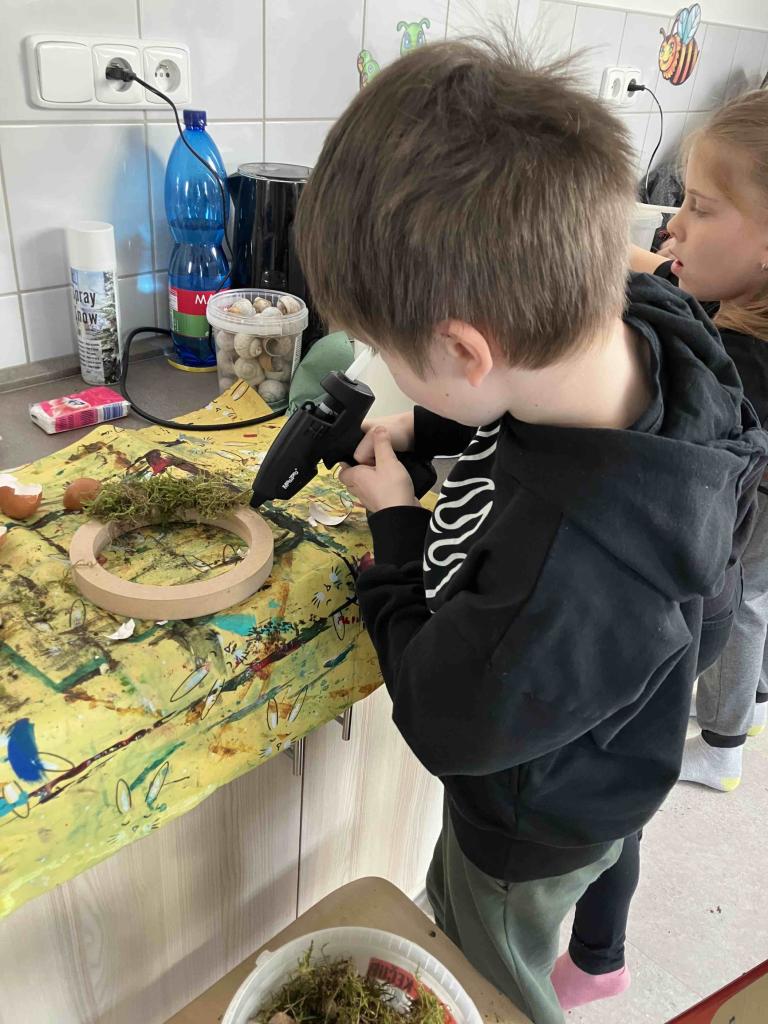 Děti v kroužku opět tvořili krásné velikonoční dekorace pdo vedením naší úžasné Evičky Branžovské.